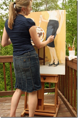 I’m particularly fond of Leslie’s Domestic Series, a collection of paintings that features an unidentified woman (turns out they’re self-portraits) in fabulous heels running her household and raising her children. While the scenes could be straight out of the 50s or 60s, the clothes are just modern and sexy enough that I feel like Leslie has captured today’s working mom and honored her in acrylic.